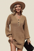 A relaxed, cozy mini sweater dress with effortless style. The V-neckline and dropped shoulders give it a laid-back, oversized feel, while the textured knit and button opening add thoughtful detail. Mini length keeps it youthful and versatile — wear it alone or layer it over tights for a transitional season look. Available in Camel.